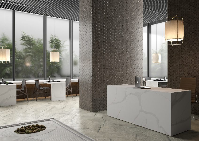 Sol bestows opulent shades of gold in its large-pattern veins, giving any room a cheerful glow. The striking white infuses your space with abundant brightness. What a perfect backdrop for the twirls of warm hues poking through like sunbeams on a sublime morning.